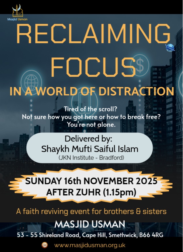 Date: Sunday 16th November 2025 Time: After Zuhr Salaah (1:15PM)